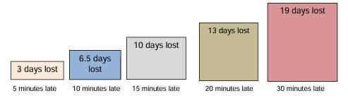 It is also important to arrive at school on time. If a child arrives late to school every day, their learning begins to suffer. Below is a graph showing how being late to school every day over a school year adds up to lost learning time over one academic year.