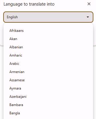Then select the small downward arrow to see the languages available and select your preferred language.